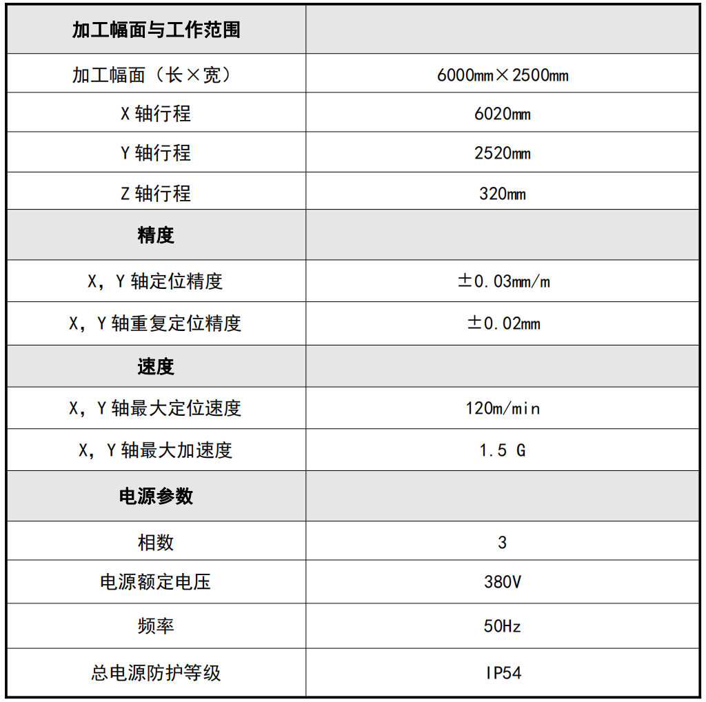 采用龍門式雙伺服電機驅(qū)動系統(tǒng),同步雙驅(qū),有效保證切割時的高速度、高精度及整機運行的高穩(wěn)定性。